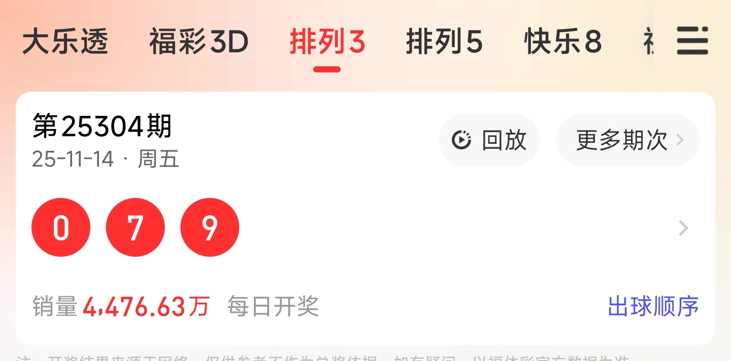 上期开出079,和尾为16,跨度为9,奇偶比为2:1,大小比为2:1,012路个数对比为2:1:0。