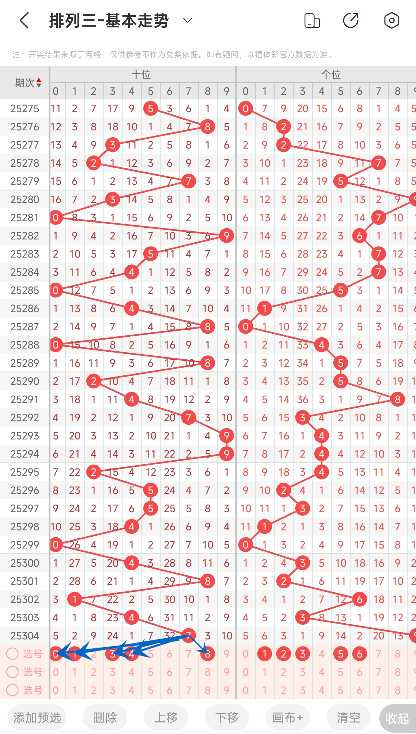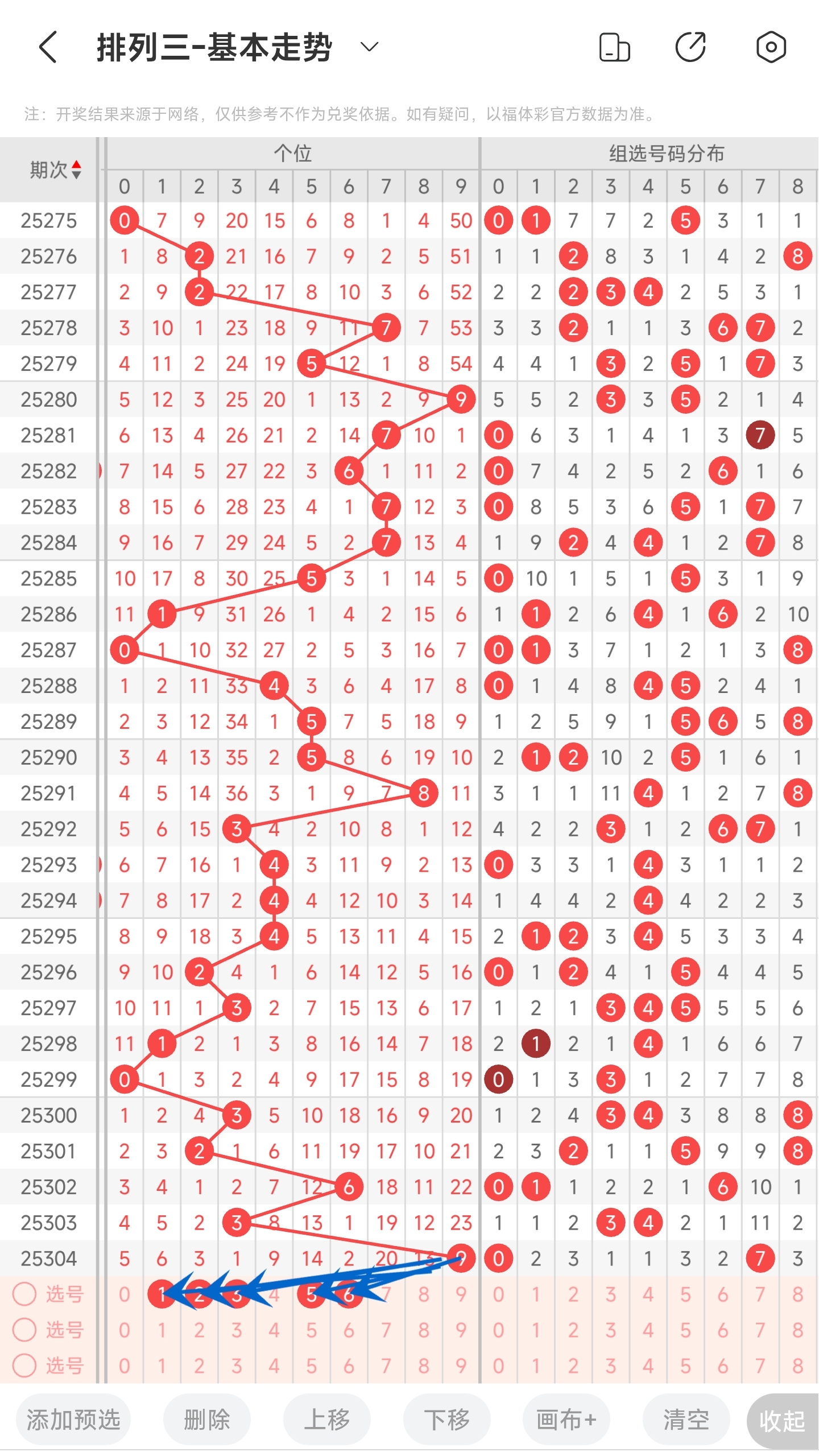 上期开出了0号球。往前一期开出的是9号球。趋势往右移动,偏移了9个点。通过走势图分析,可以看到目前趋势是比较明显往右的了。可以看到上期偏移量也是很大的,已经连续2期都是最大的偏移量的号码。目前我们也是主要关注大偏移量的号码,其次是中小等偏移量的号码。最后再结合遗漏期数和冷热号,本期我们可以关注1,4,5,8,9号球。综上所述本期我们推测可能开1,4,5,8,9等号码。