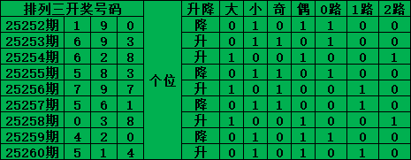 012路分析,上期是2路,本期选择0路/1路:0/4号。
