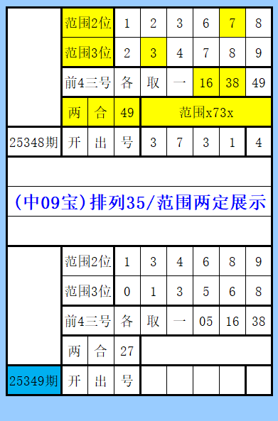 排列35第349期综合图文(中09宝),两定推荐,上期范围x73xx两合4