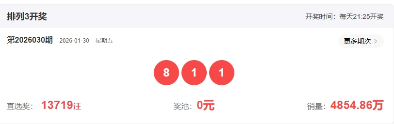 排列三第2026030期开奖回顾:开奖号码:811 形态:组三