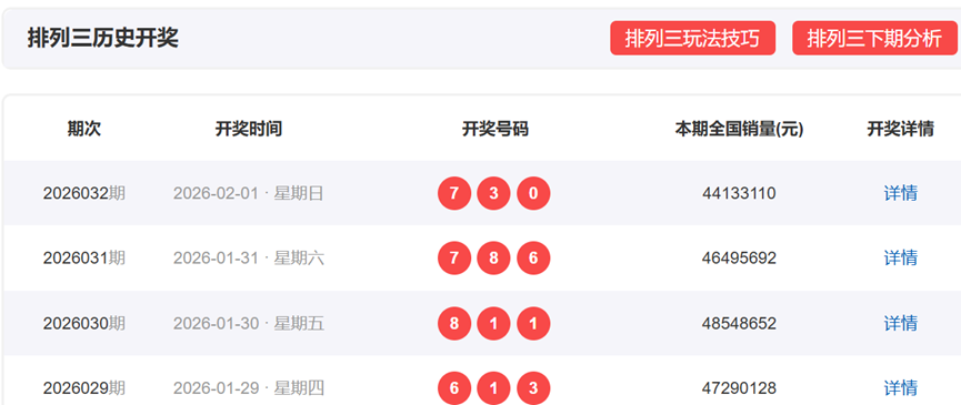 体彩排列3上一期,开奖号码为730,形态为组六,奇偶比为2:1,012路数值表现为100,和值10,和尾0,跨度7。