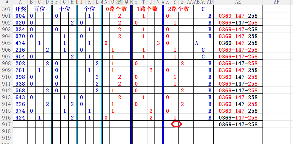 如上图56,012路分析0路出号的概率还是很大,本期可以0路号入手做胆0369中选;看好369胆码
