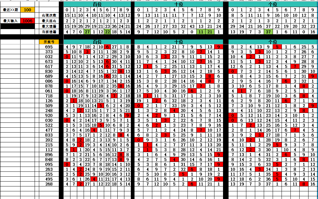 17:中间值排序(近100期)中间值排序为5642713809 *首选*>>>56427 *次选*>>>13809