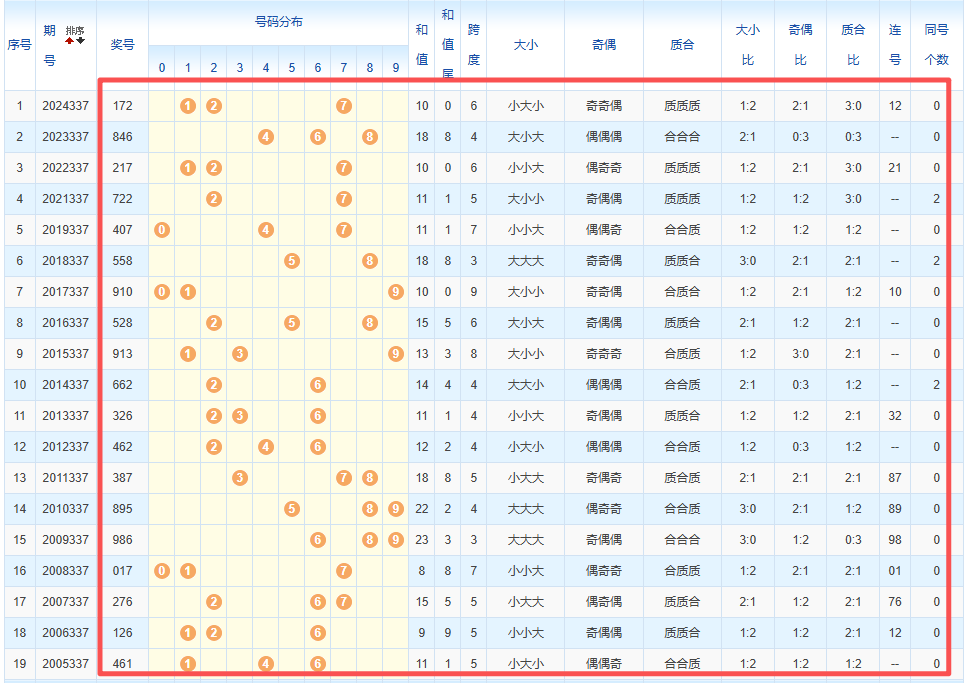 本文分别通过三个方面对本期排列三进行深度分析,这三个方面分别为:一:历史追随、二:往年同期数据、三:近期百十个遗漏值情况。