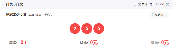 2025340期开奖号码: