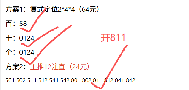 金莱排列3第031期:上期12注单式命中811直选