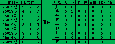 012路比:2:1:6,9期中最热的是2路,本期选择1路/0路:1/3号。