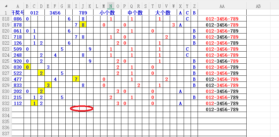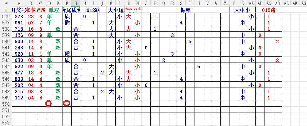 如上图2,012路分析,01路尾走比较好,关注34567尾;