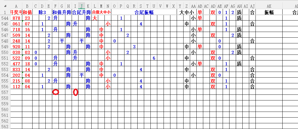 如上图2,大中小分析来看,中小数尾3456尾,可以考虑定345尾。