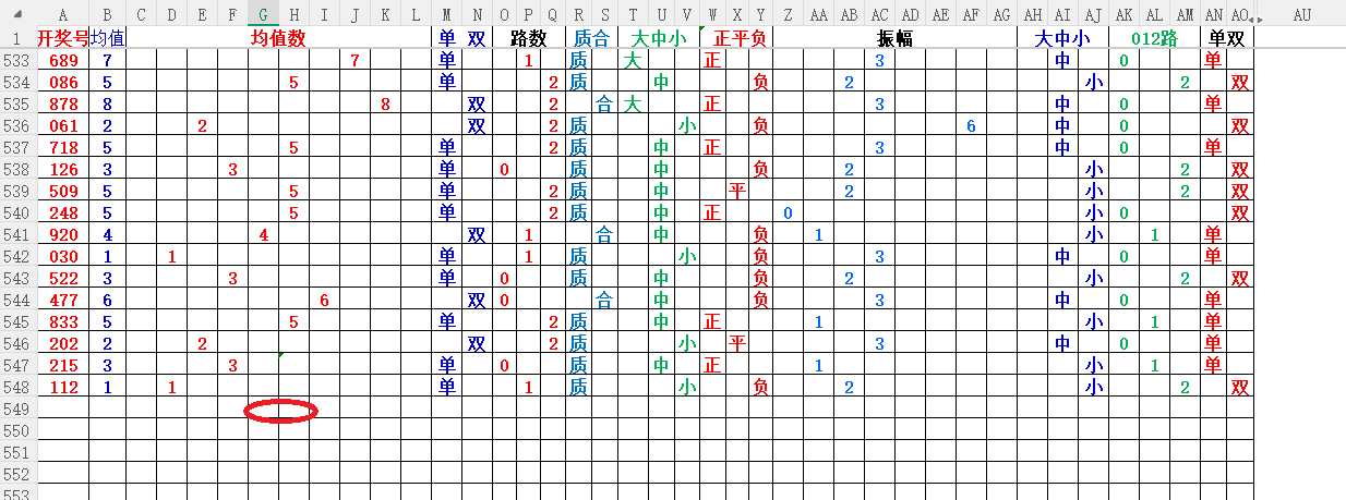 如上图1,大中小分析,均值小中大数比较好,也就是 3456 均值最好,重点:45。