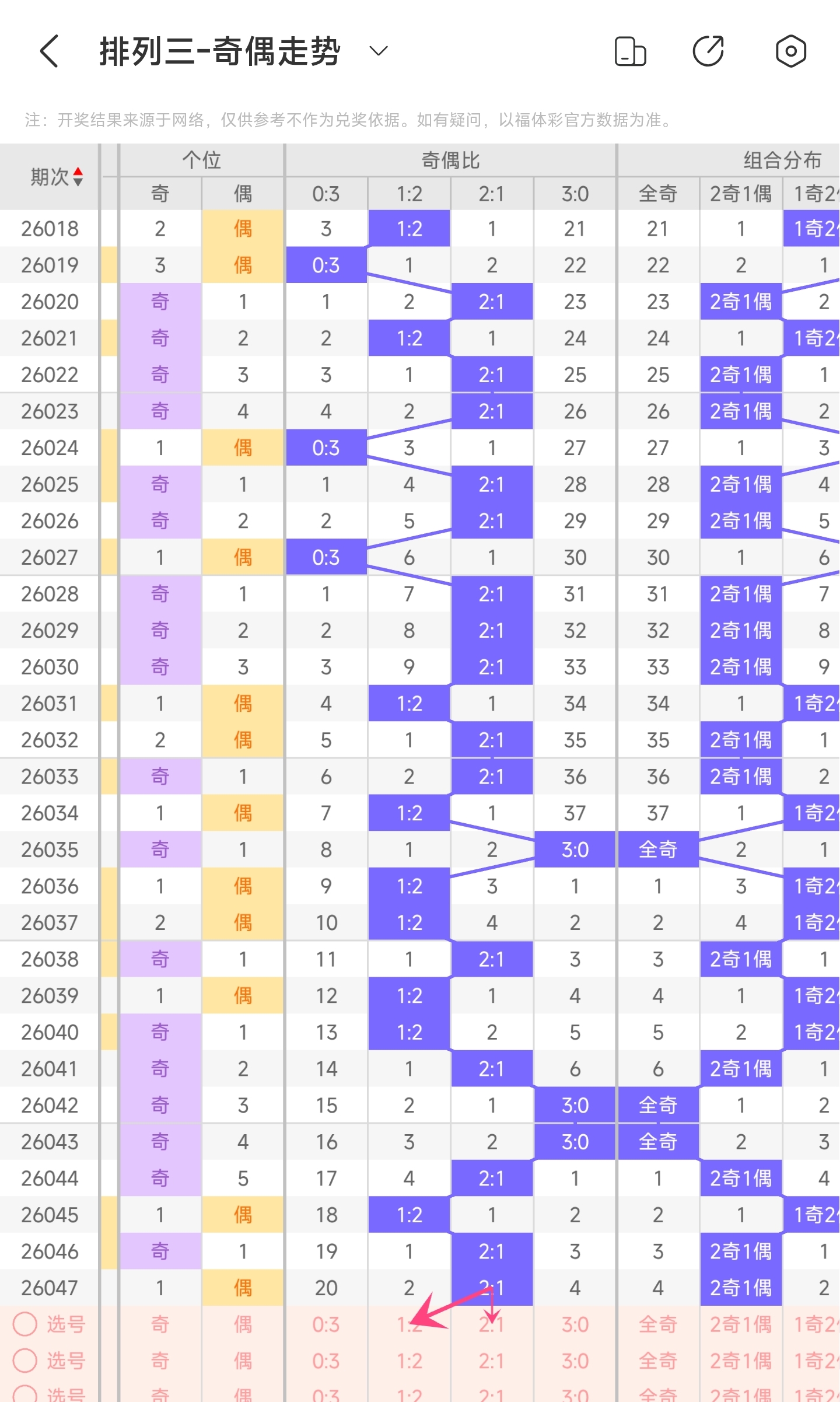 三、通过奇偶走势分析: