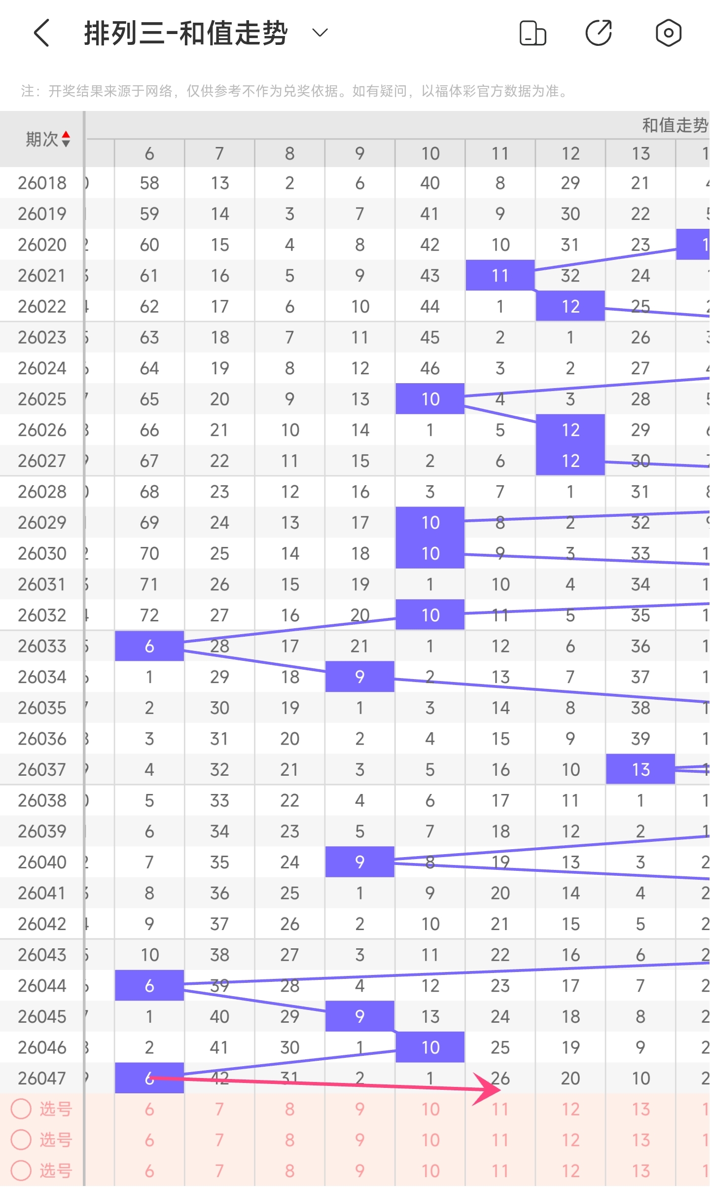 二、通过和值走势分析: