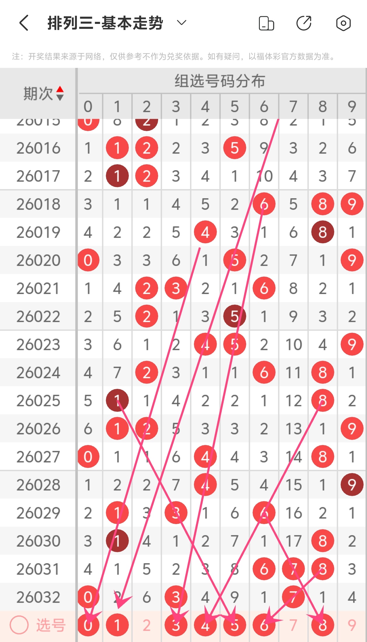 通过以上简单分析,我们看下26033期号码的定位分析: