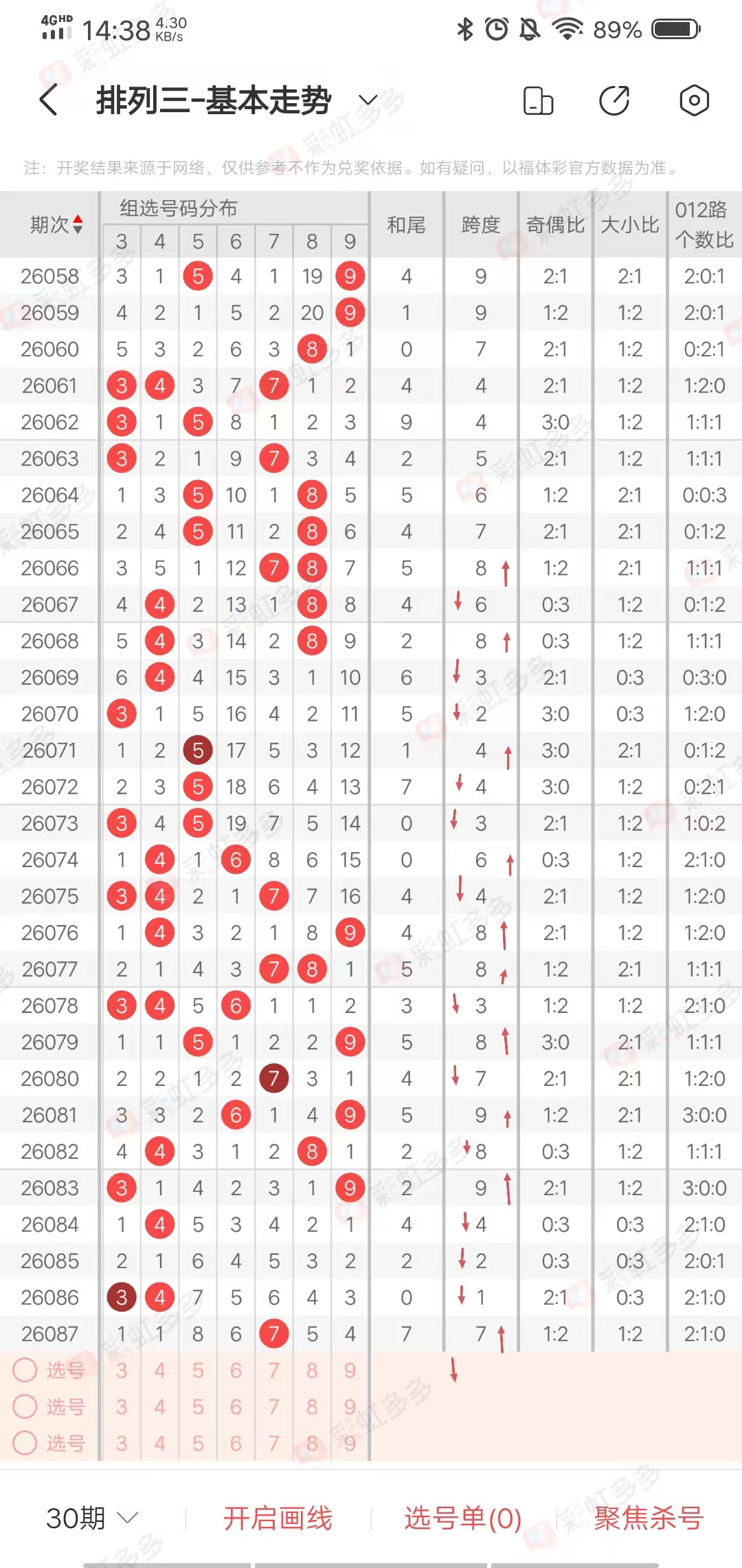 本期排列三,就分析到这里了,喜欢的点个赞➕关注,打赏自愿,量力而行。感谢给我打赏的友友们,祝你们,大奖连连,小奖不断,身体健康,万事如意,家庭美满。