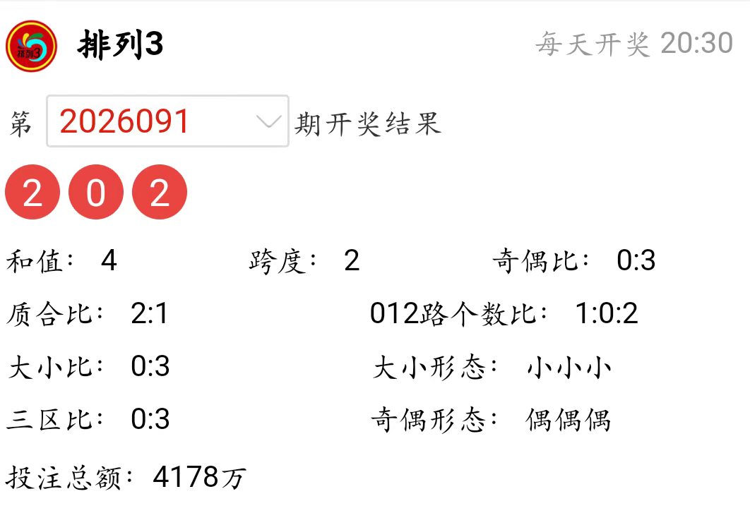 排列3第2026092开奖号码个人分析,本期十位关注奇数,金胆1号
