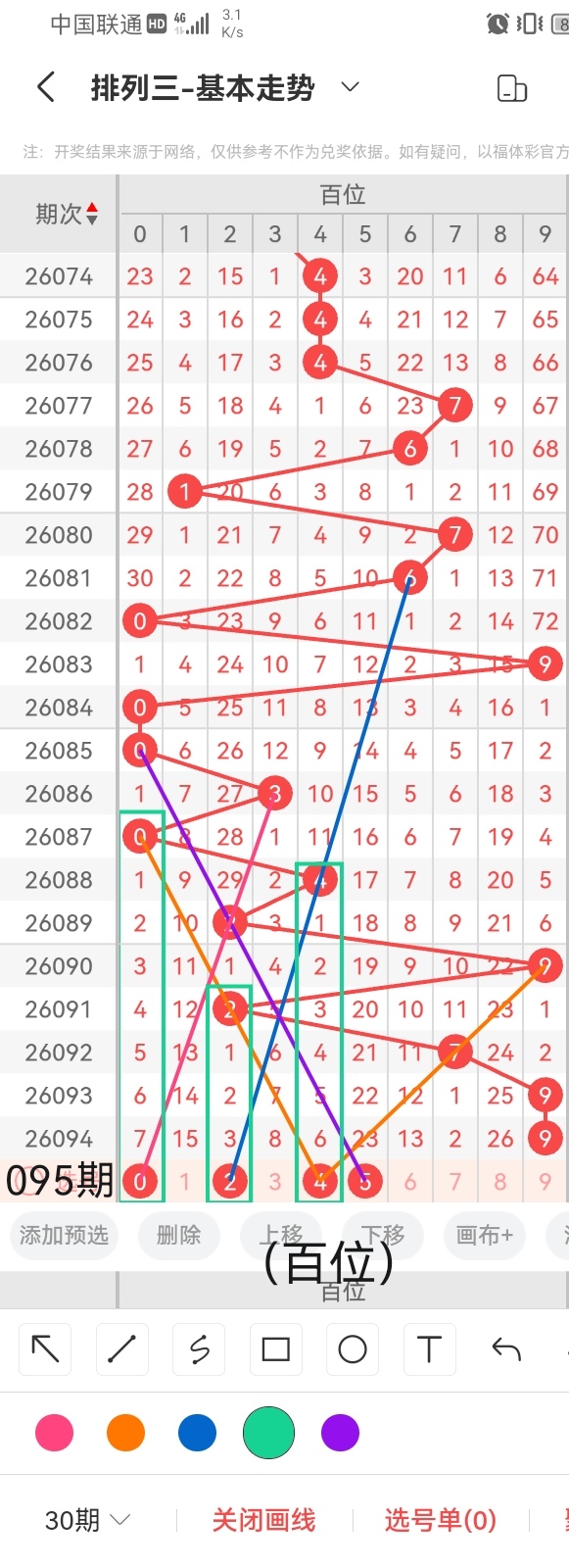 通过以上对上期的简单回顾,下面进入体彩排列三第2026095期(下面简称本期)的选号分析: