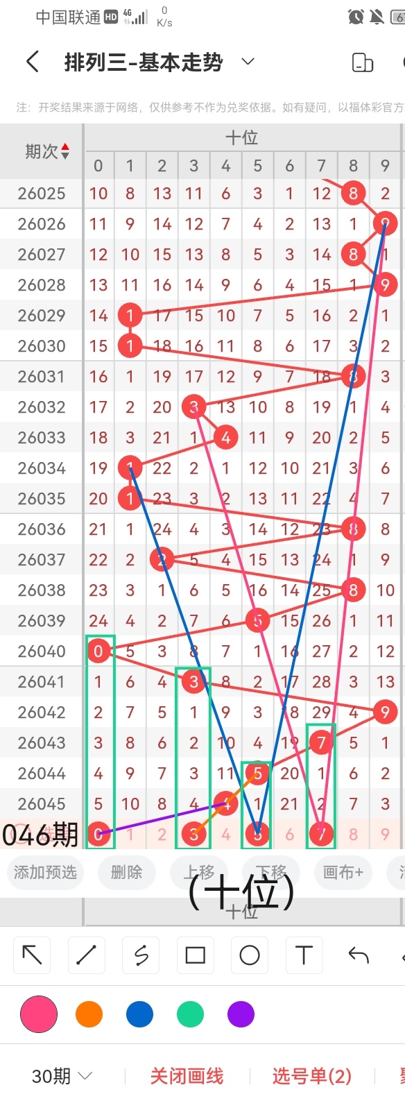 通过以上对上期的简单回顾,下面进入体彩排列三第2026046期(下面简称本期)的选号分析: