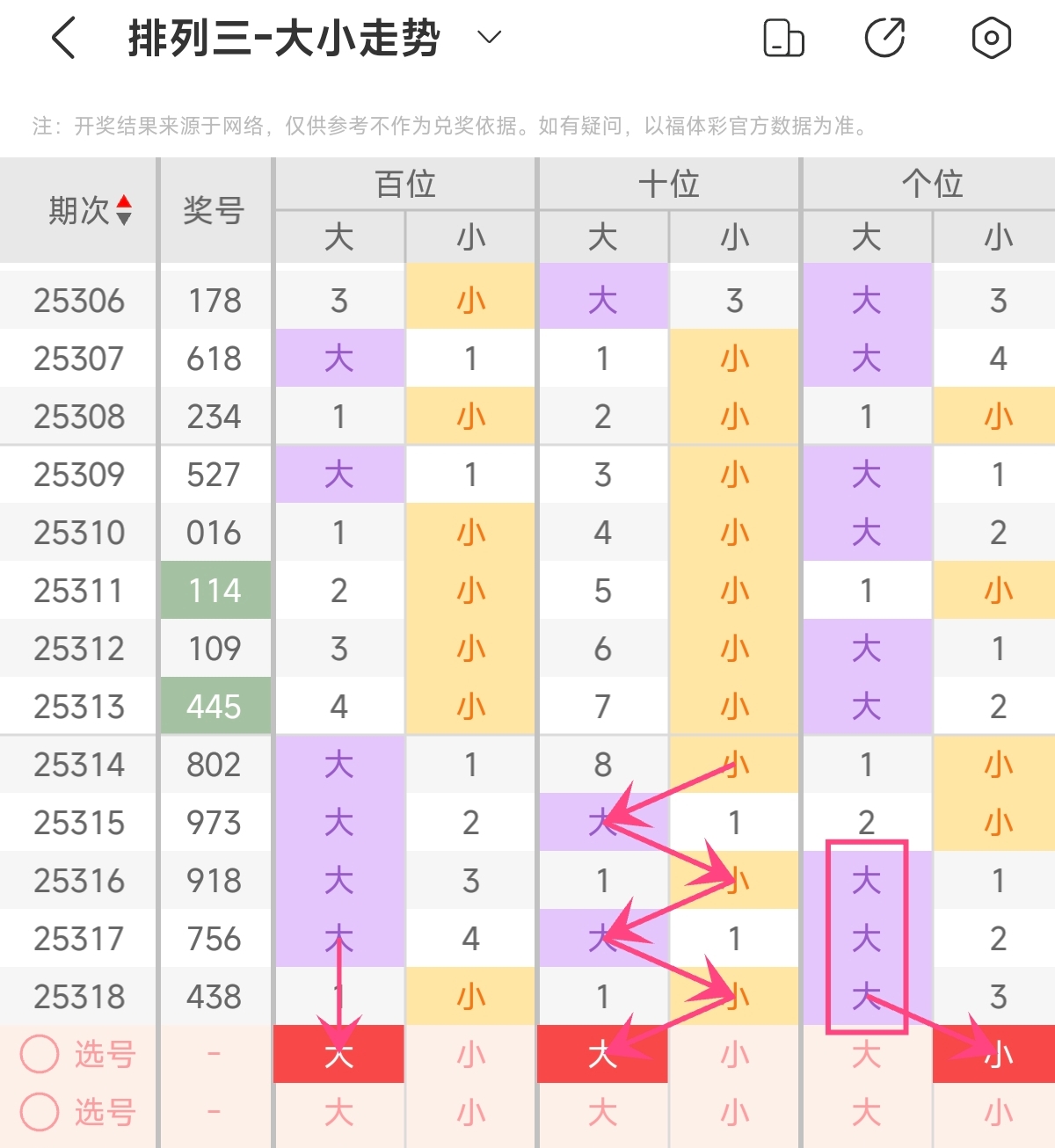首先让我们回顾一下上期排列三第2025318期开奖号码为438,为组六形态,大小比为1:2,奇偶比为1:2,跨度为5,和值为15。