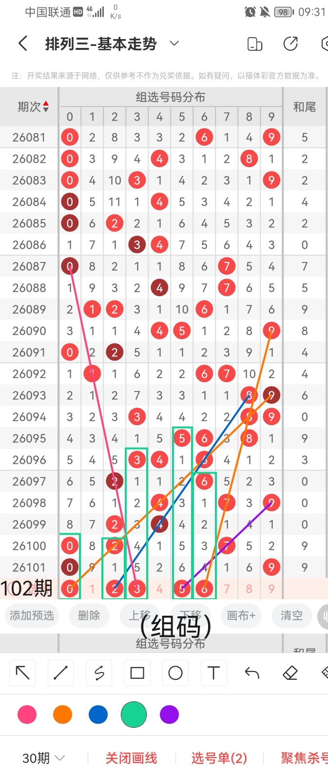 通过以上对上期的简单回顾,下面进入体彩排列三第2026102期(下面简称本期)的选号分析:
