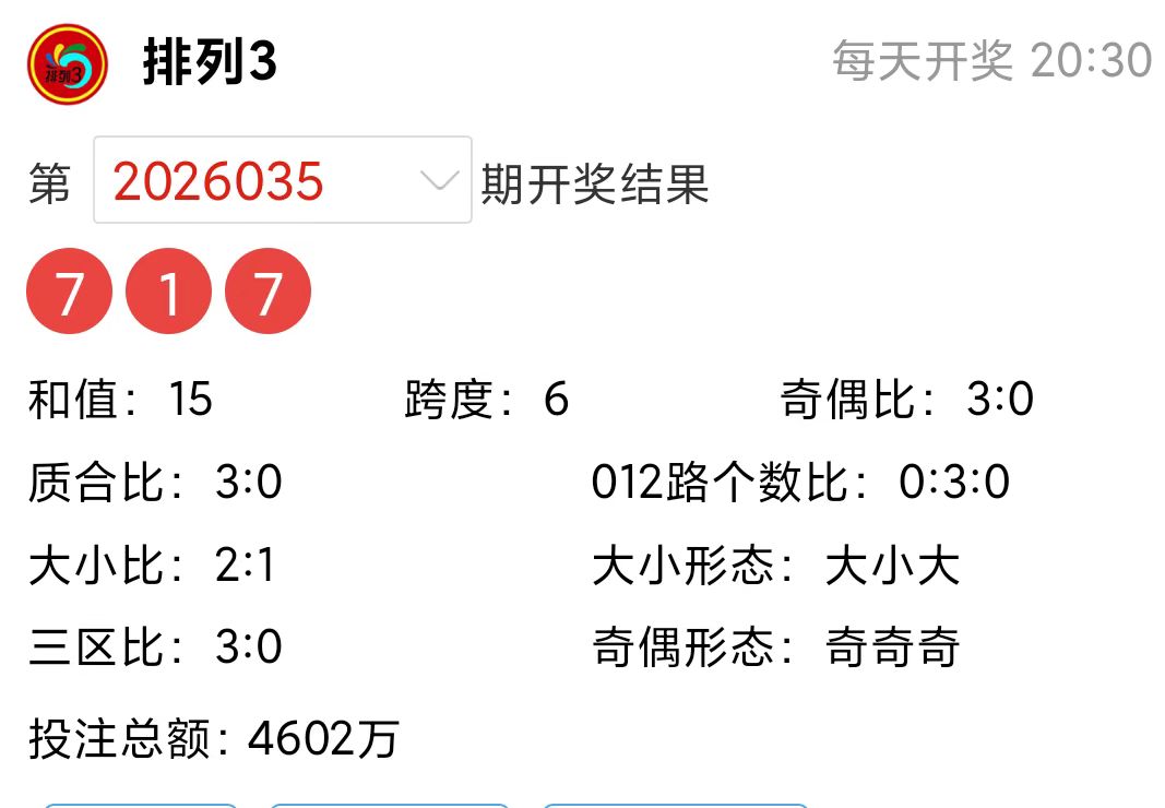 排列3第2026036期开奖号码个人分析,本期考虑关注奇数,金胆5号