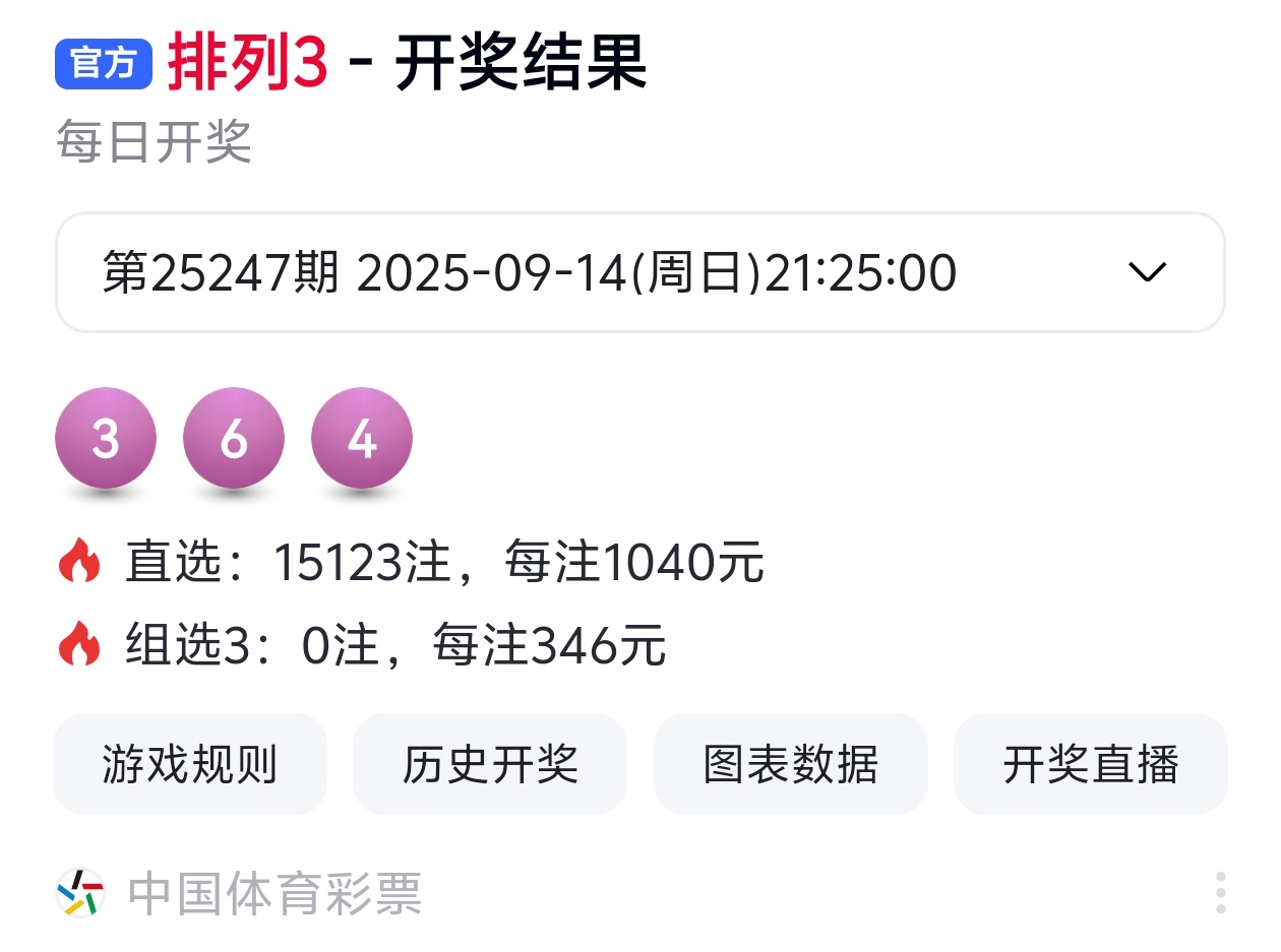 上期开奖号码:364,和值:13,跨度:3,奇偶比:1:2,大小比:1:2,012路比:2:1:0,形态:组六,本期希望能给大家一个靠谱的参考,在大家阅读文章的时候,期望您能动动发财的小手,点点关注,万分感谢,另外也需要提醒大家参考为主,切勿当真,不要盲目跟随!