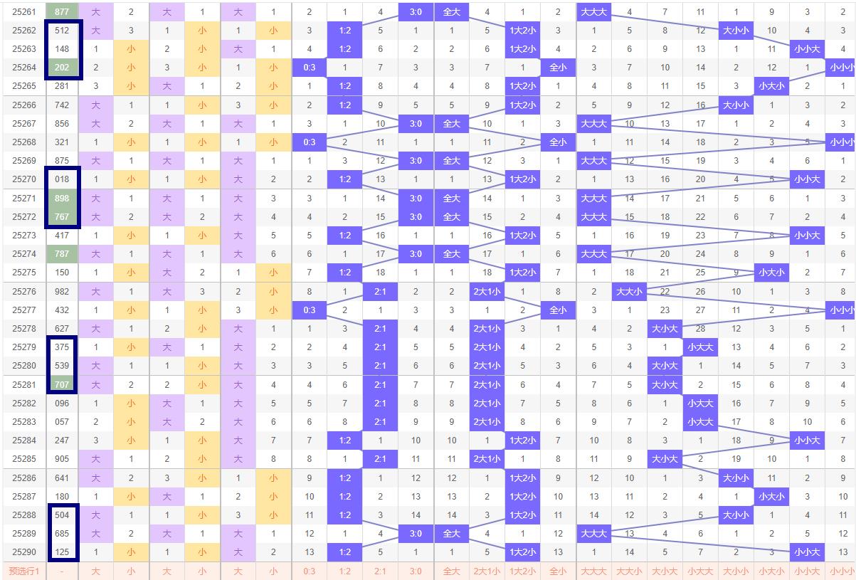 排列3/291期综合分析报告 :290期开奖号码为125跨度4和值为8,奇偶奇,小小大的形态。