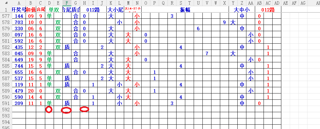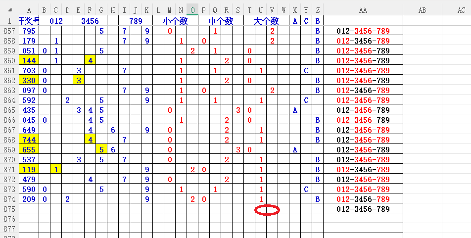 如上图56,012路分析0路出号的概率还是很大,本期可以0路号入手做胆0369中选;看好369胆码