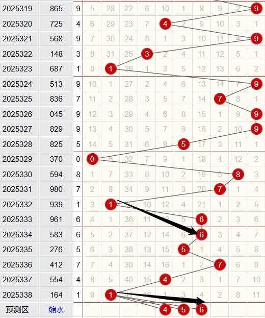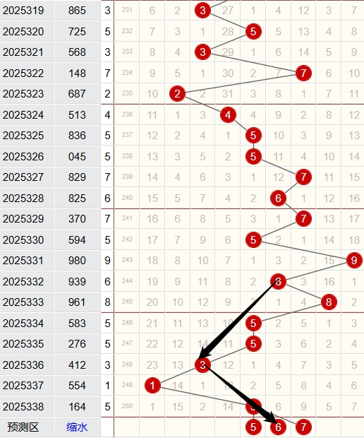 上期跨度为5,近5期跨度开出情况:第25334期开出5,属于奇数,2路号码,土属性;第25335期开出5,属于奇数,2路号码,土属性;第25336期开出3,属于奇数,0路号码,木属性;第25337期开出1,属于奇数,1路号码,水属性;第25338期开出5,属于奇数,2路号码,土属性;
