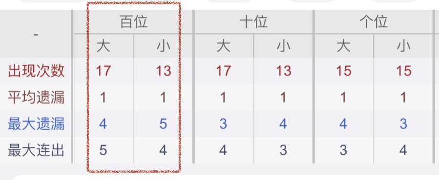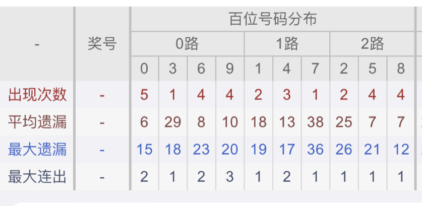 从近30期数据我们可以看出百位1是热码,这个冷热码数据我们结合之后的分析再利用它