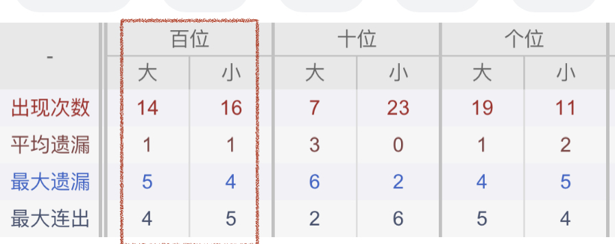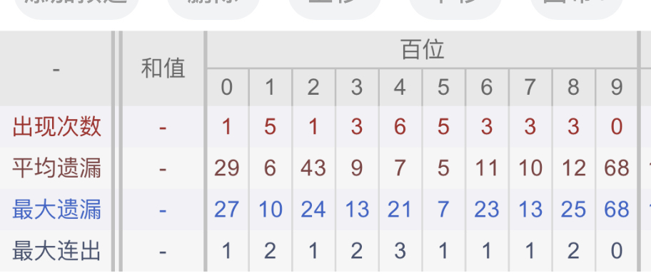 从近30期数据我们可以看出百位1是热码,这个冷热码数据我们结合之后的分析再利用它