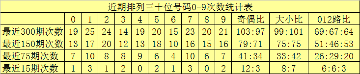 个位分析:最近300期奖号由冷到热表现为:922,0625,826,1530,232,735,436,339次,该位号码奇偶比为156:144,大小比为138:162012路比为111:101:88