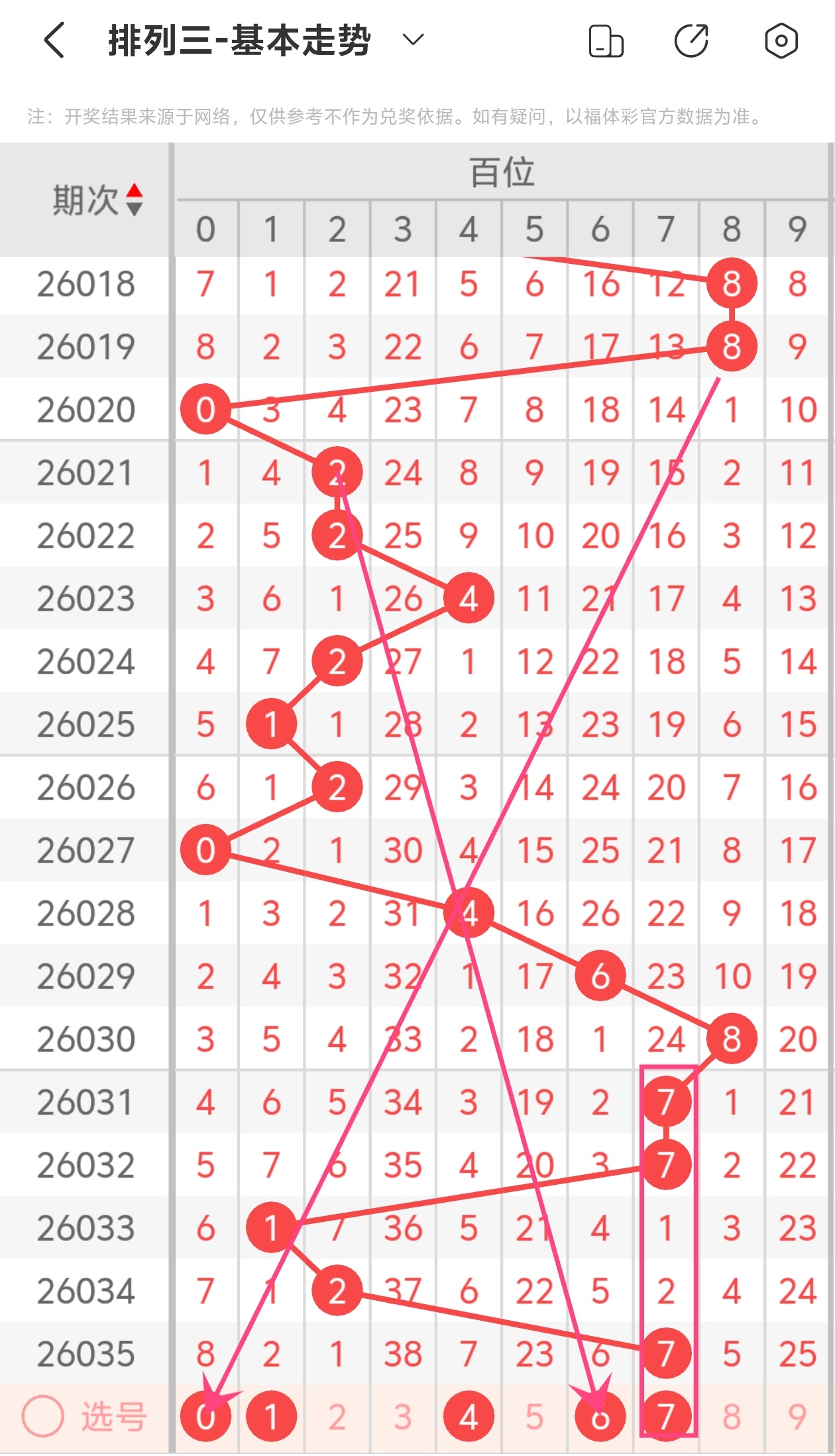 下面是体彩排列3的百位走势图分析