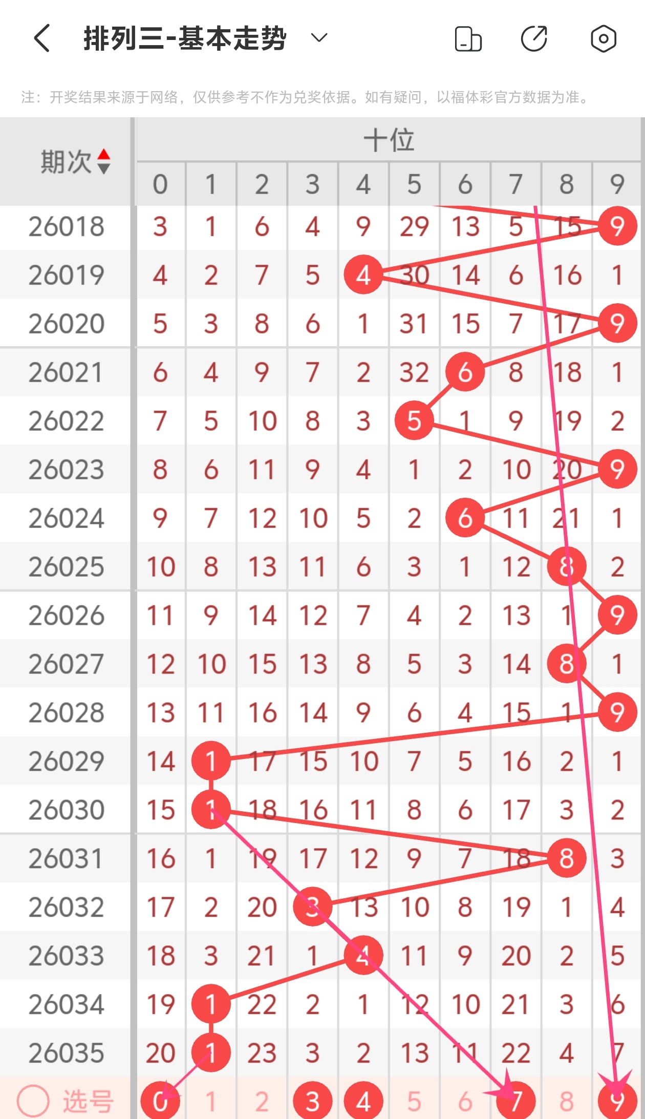 下面是体彩排列3的十位走势图分析