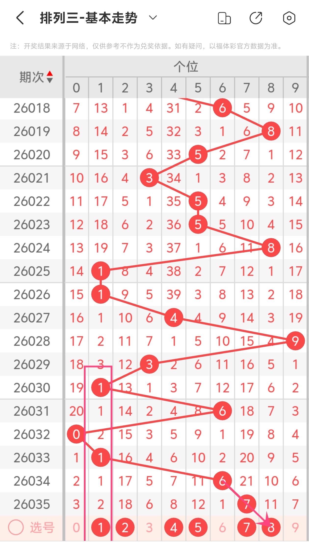 下面是体彩排列3的个位走势图分析