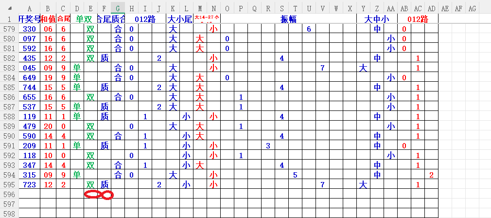 如上图2,012路分析01路尾走比较好,关注345尾;