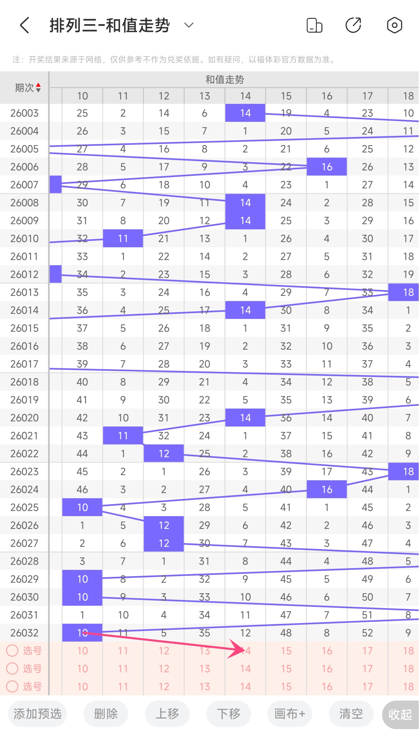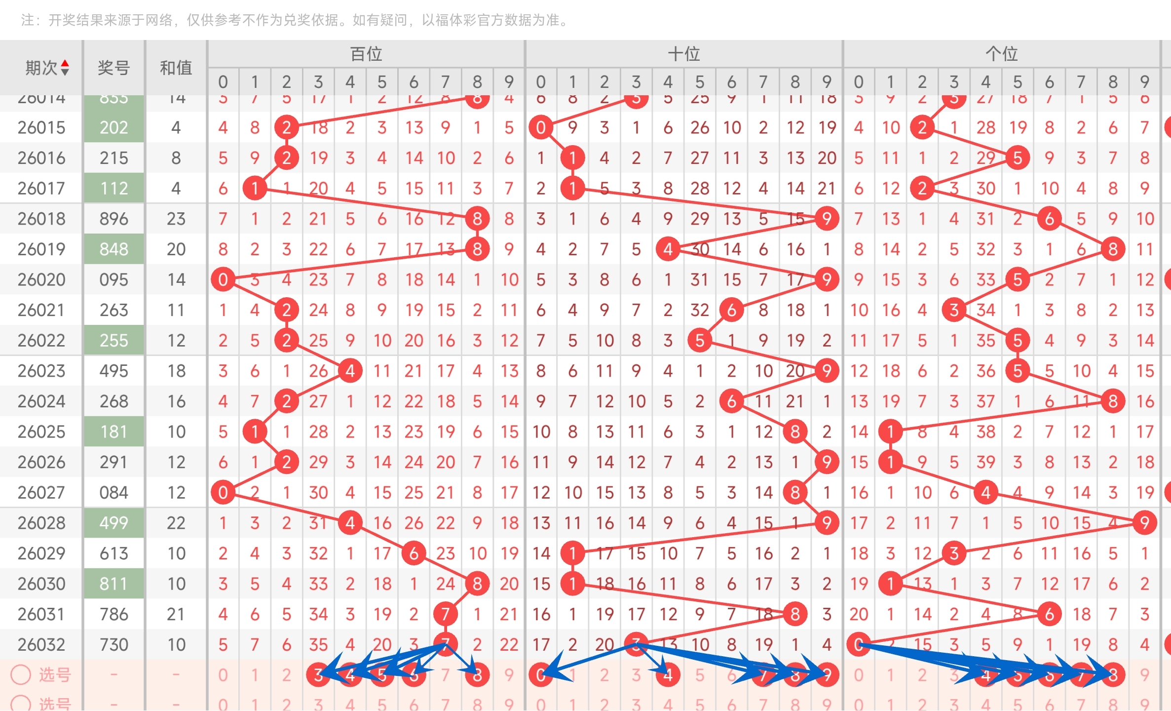 二、通过和值走势分析: