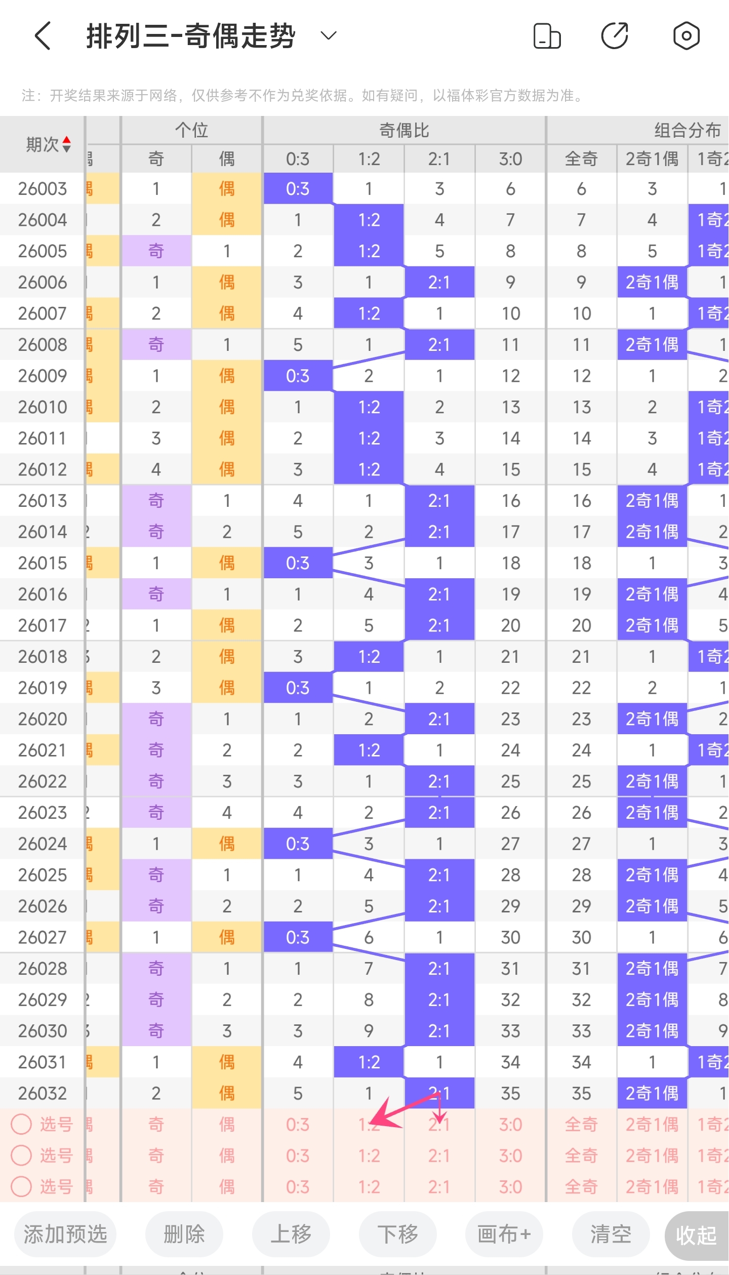 三、通过奇偶走势分析:
