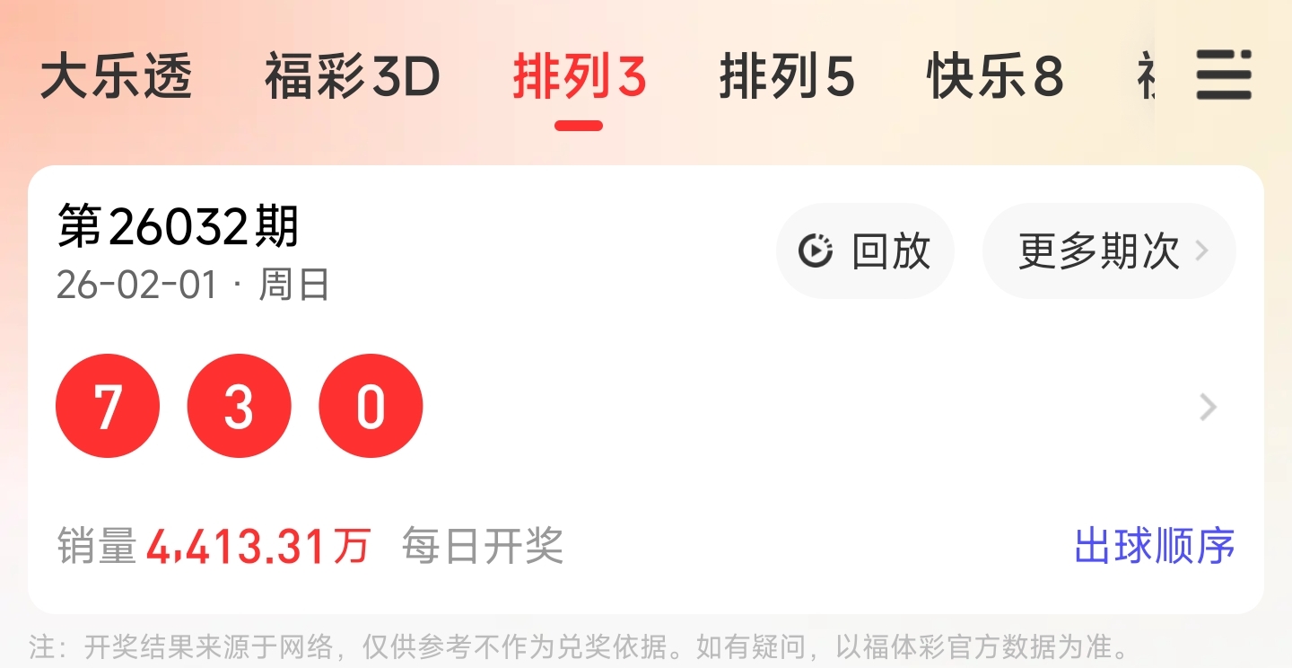 上期排列3开出730,和尾为0,跨度为7,奇偶比为2:1,大小比为1:2,012路个数对比为2:1:0。