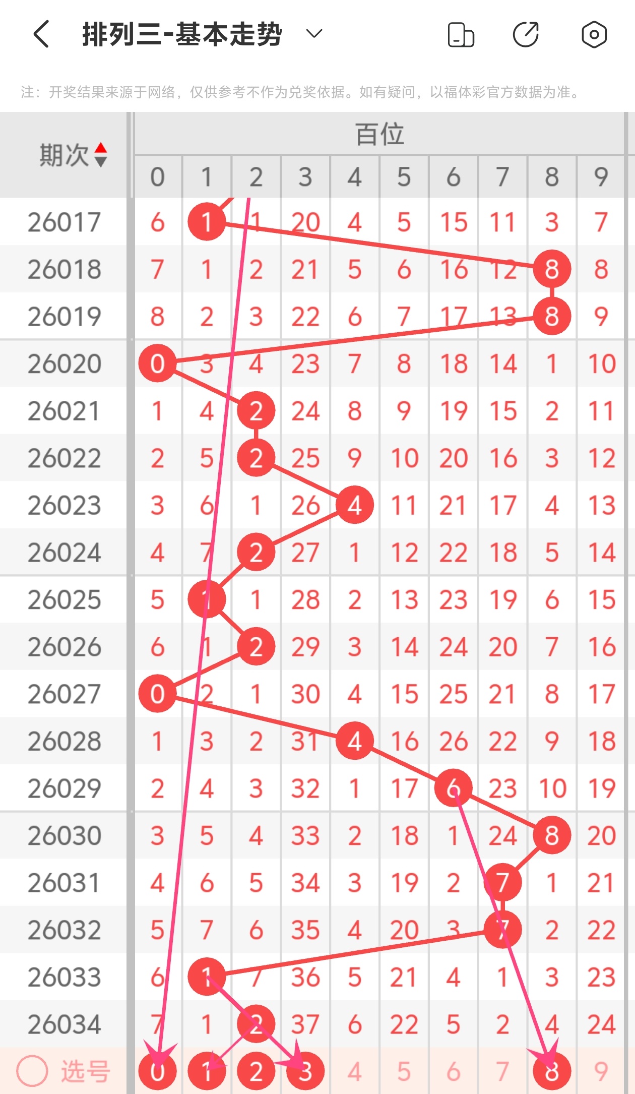 下面是体彩排列3的百位走势图分析