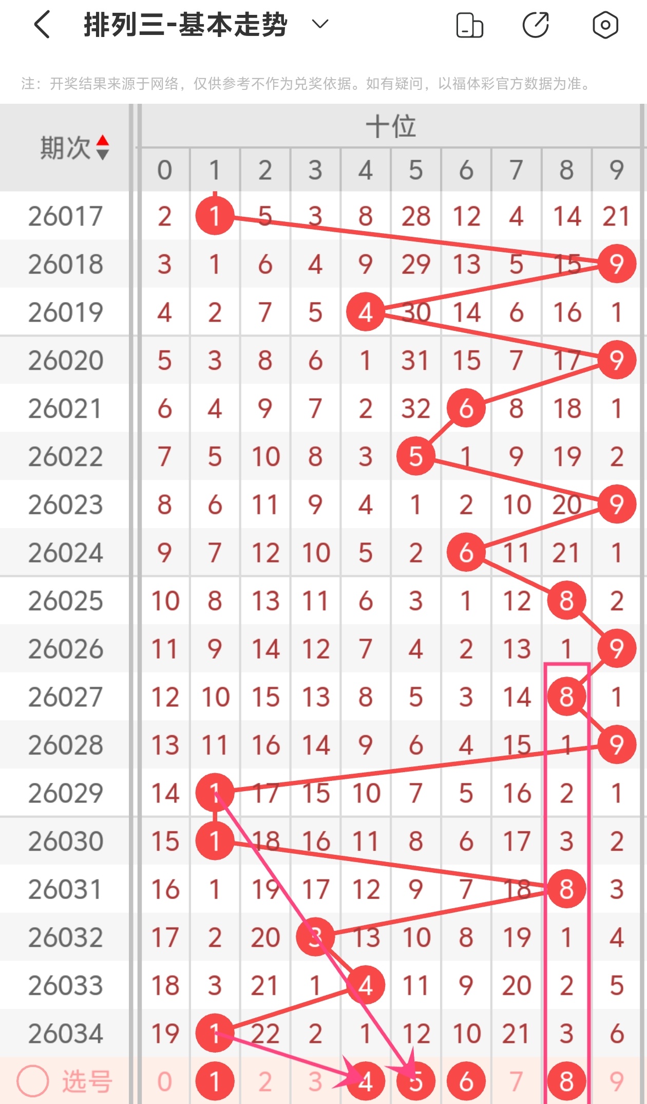 下面是体彩排列3的十位走势图分析