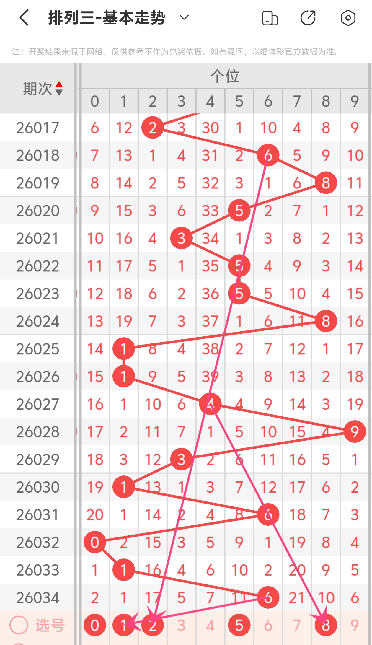 下面是体彩排列3的个位走势图分析