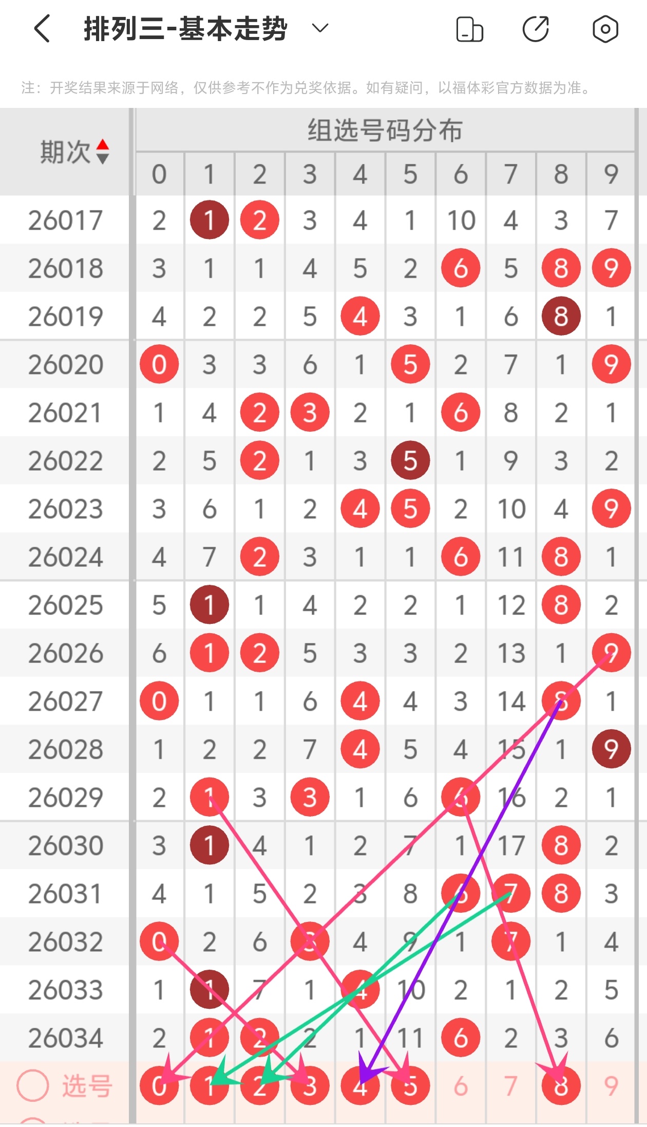 通过以上简单分析,我们看下26035期号码的定位分析: