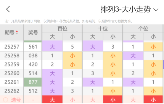 带着粉丝发大财体彩排3第25263期选号条件分析