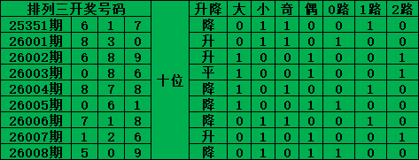升降分析,上期是升,本期选择降:0-8号。