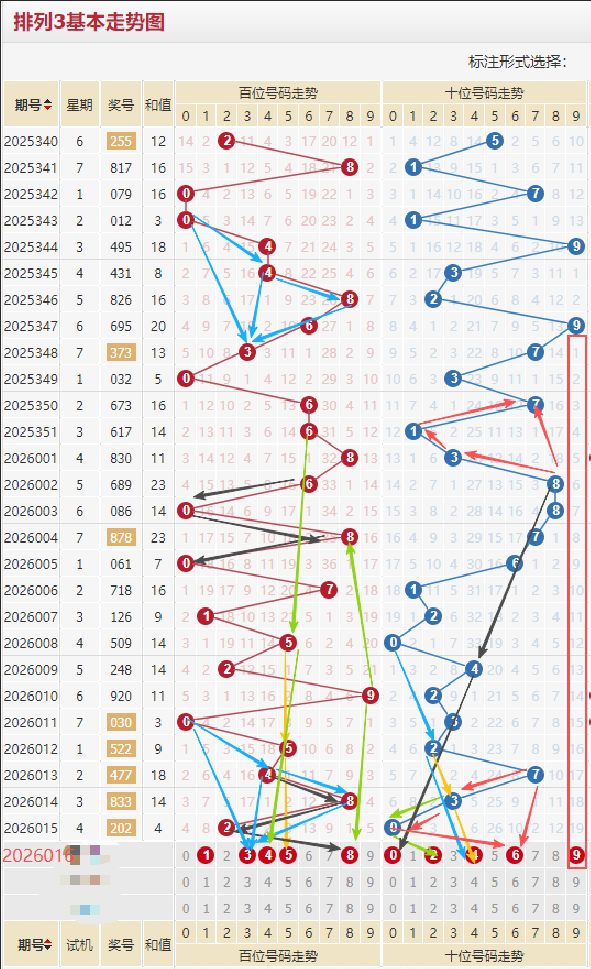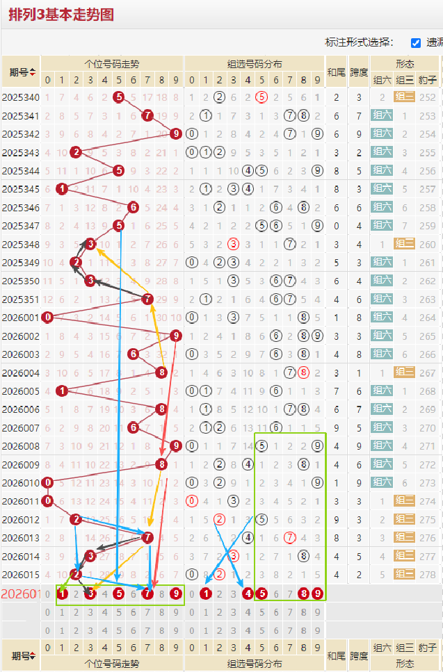 百位近期走势,上期开出合数2号,质数偶数,看得出百位冷号都在回补,现在冷号就一个3还未出,本期继续走冷3,和23形成斜线走来也不错,近10期奇偶比例均衡各出5期,如上图绿色箭头6/5/4斜线,和2形成走两步以关注,近13期没有重复开出2就考虑首选,小数热度偏高本期看好大数5/8,黑色线6080和4828形态相似下来重点考虑,黄色箭头5/5/5都是等隔开出,蓝色箭头0/4/8/3太好看,综合上图百位推荐:13458