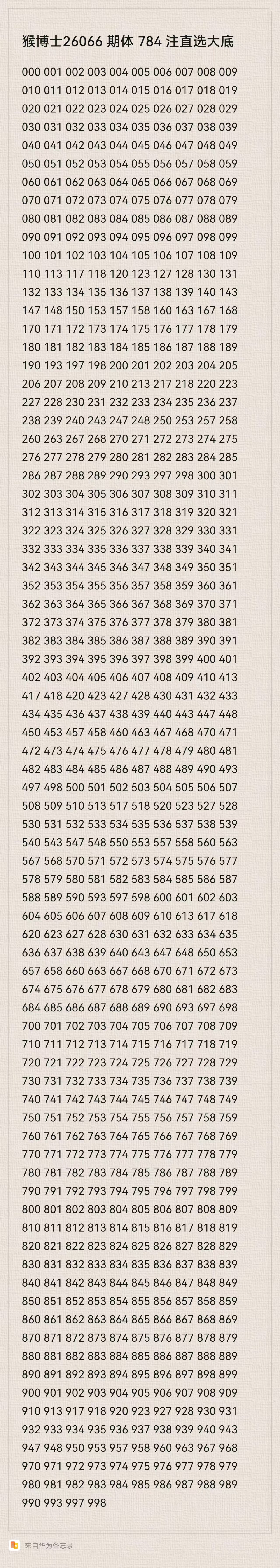 猴博士26066期排列三784注直选大底:(可以当母底用,然后进行缩水)