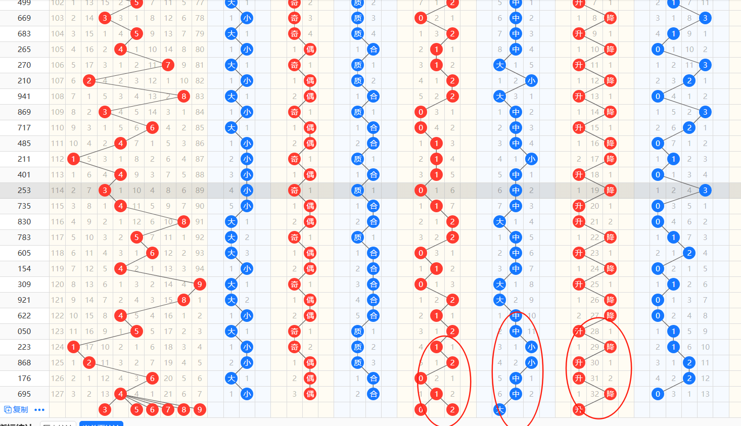 上期命中:半顺、凸起、167=1、两奇一偶、两合一质等条件。又开02路号码,本期继续杀02路