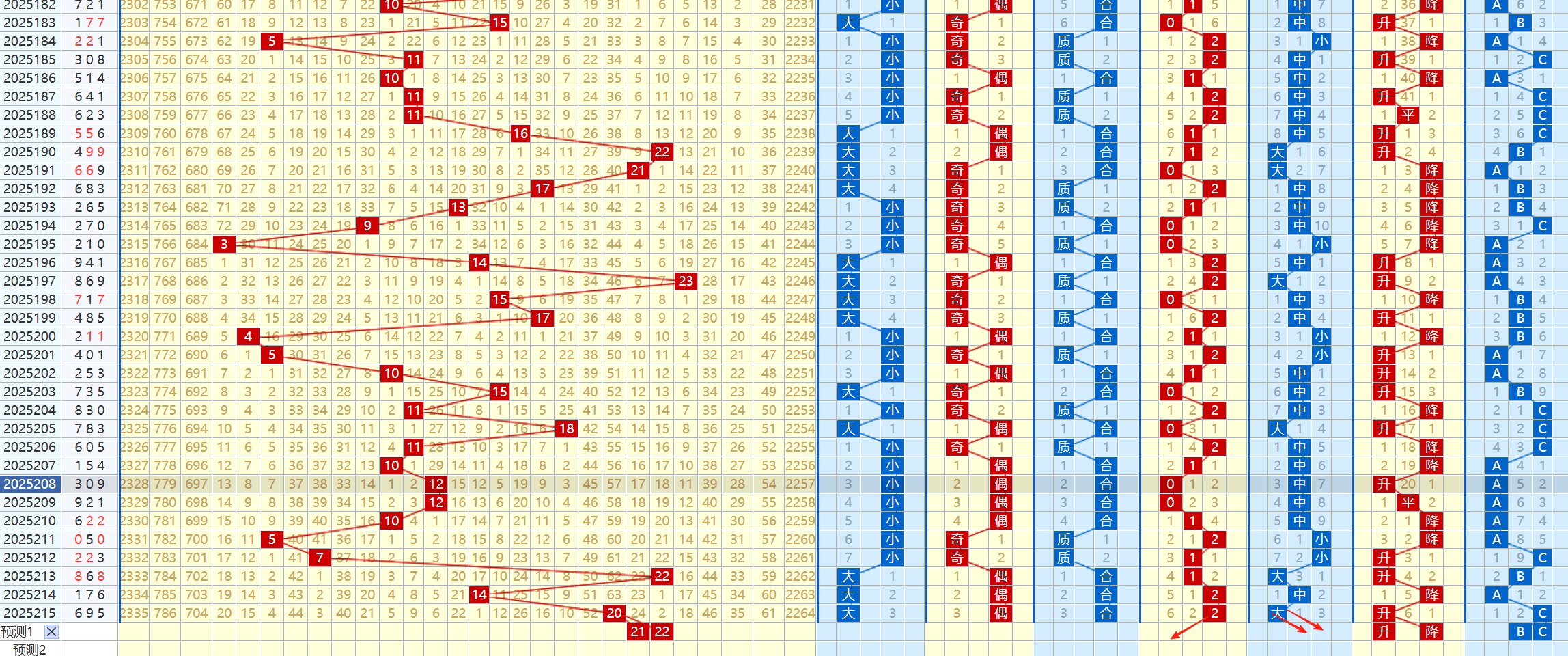 上期开出20和,本期的和值从宫数角度来看开出B/C宫数的概率较大。和值的升平降走势上开出下降的概率较大,和值主看0-19,可小防上升的21/22.近期的012路走势中1/2路和值开出较多本期重点关注0路和值的回补防守1路和值开出。结合上述条件来看本期和值可选:4/6/7/13/15/16/18/22/24/27