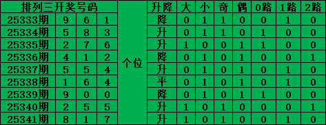 012路分析,上期是2路,本期选择1路/0路:1/3号。